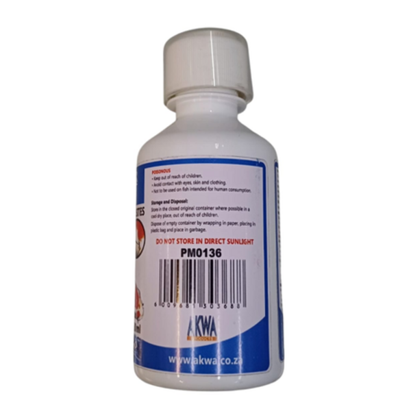 Re-seed biological filter and allow adequate time before normal feeding is continued.Add 1m per 100 of pond water for fish spawn. Add 1m per 30 of pond water for treating infected fish.