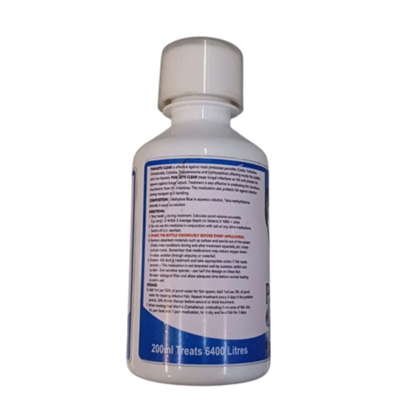PARASITE CLEAR is effective against most protozoan parasites (Costia,Trichodina, Chilodonella, Crytobia, Tryppanosoma and lchthyoptirius) affecting mostly Koi, Goldfish and Live-bearers. PARASITE CLEAR treats fungal infections on fish and protects fish spawns against fungal attack. Treatment is also effective in eradicating the Camallanus roundworm from the intestines.