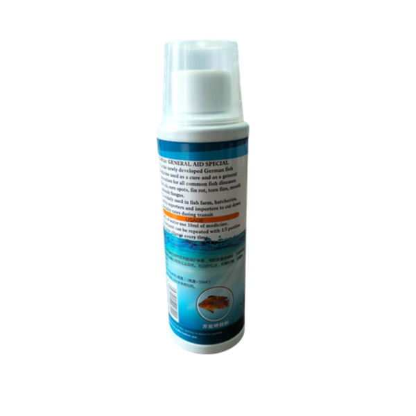 Is a newly developed German fish treatment used as a cure and as a general prevention for all common fish diseases like ick, sore spots, fin rot, torn fins, mouth and body fungus. It is widely used in fish farming, hatcheries and by exporters and importers to cut down mortality rates during transit.