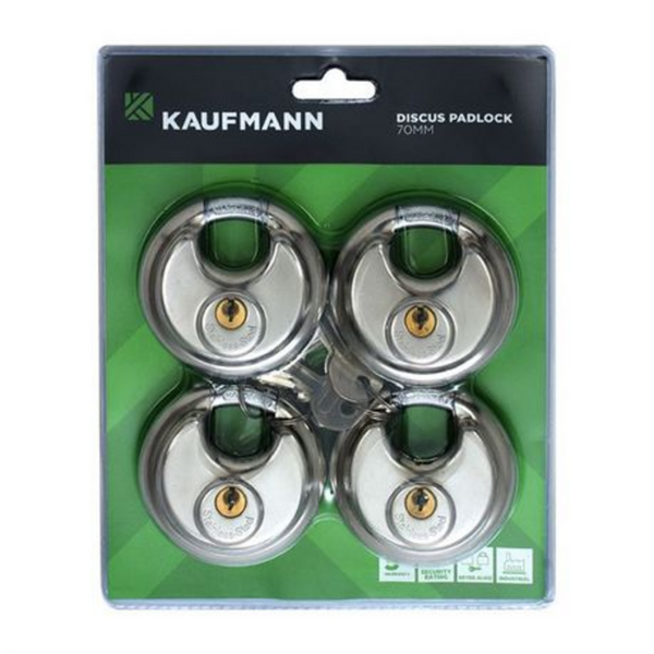 Kaufmann - Padlock Discus 70mm S/Steel (4Pack)