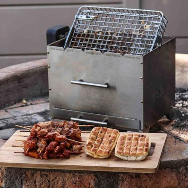 Introducing the smallest Charcoal Rotisserie yet! Enjoy a complete rotisserie experience - on a compact level. Multi-functional and built with 430 Stainless steel - this rotisserie is sure to "turn" a few heads.